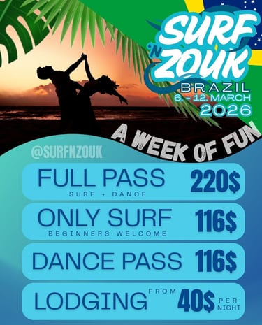 Join us for unforgettable memories uniting the energy of surf and Brazilian Zouk!