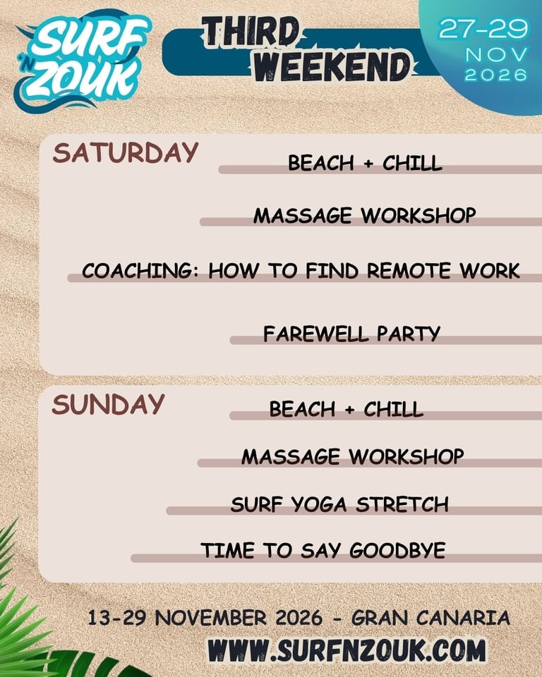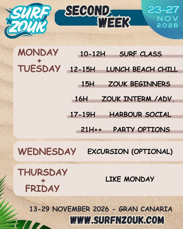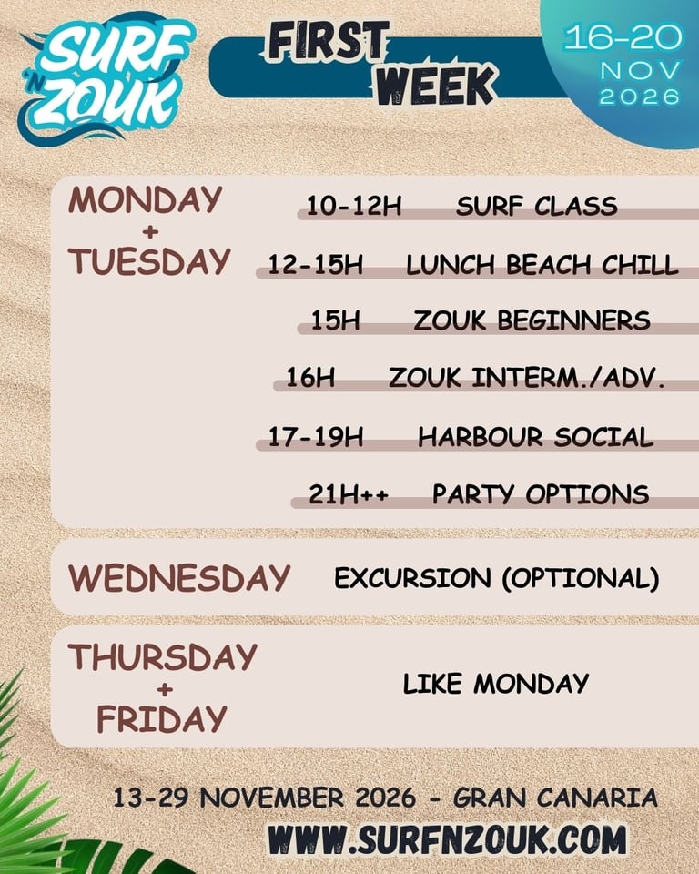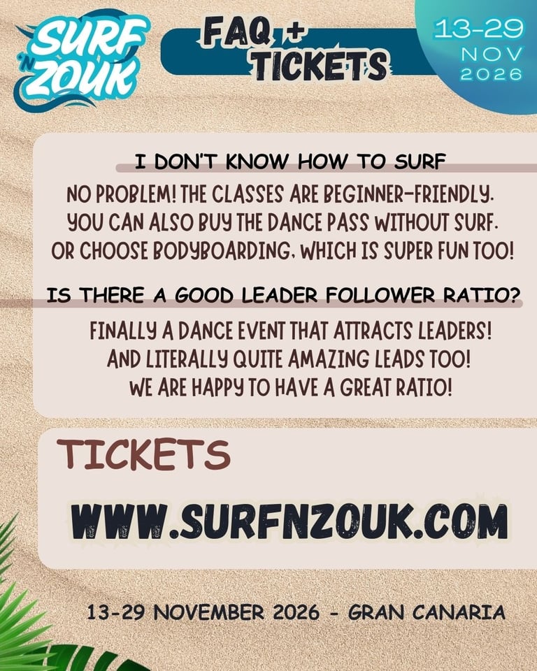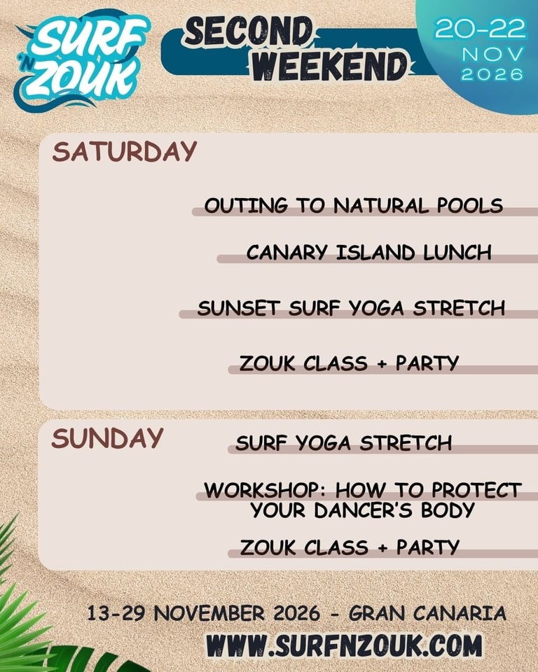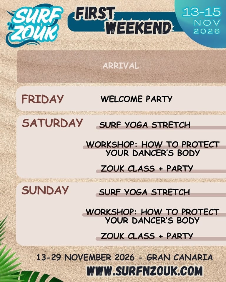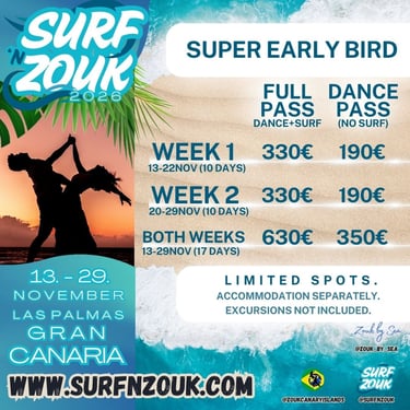 Welcome to Surf 'n Zouk 2026 Gran Canaria!! So excited to live this incredible experience together!